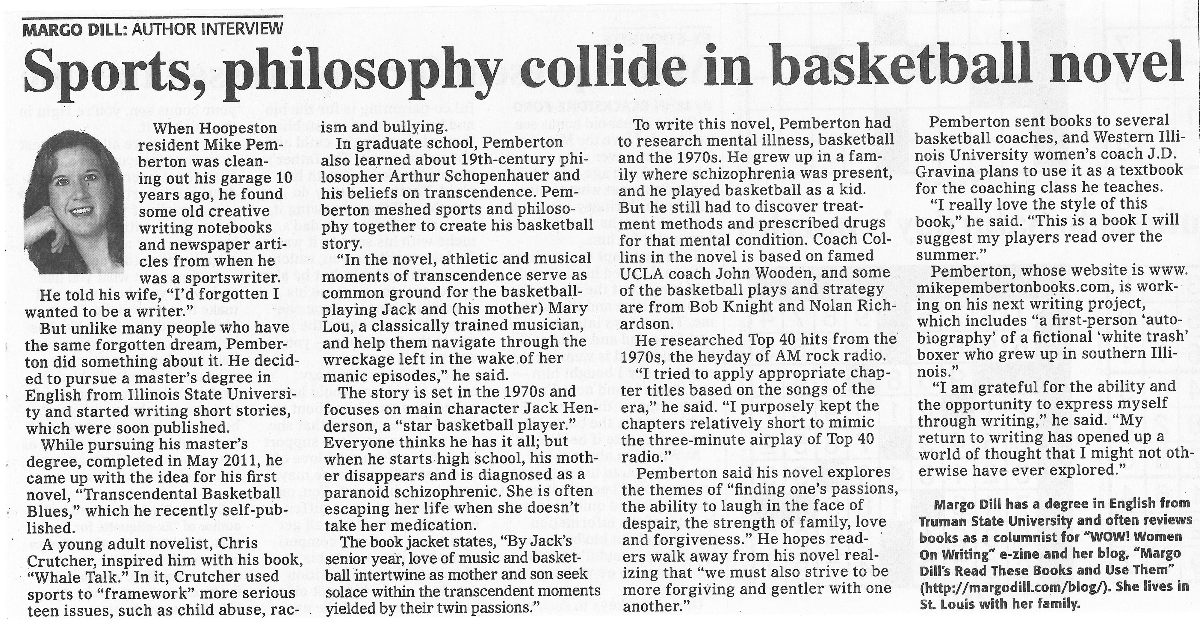 “For the price of a ticket to a basketball game, “Transcendental Basketball Blues” will not only take you courtside, but all the way back to the 1970's Midwest for no extra charge. Pemberton knows his hoops and the human heart, and this is a terrific first novel.”